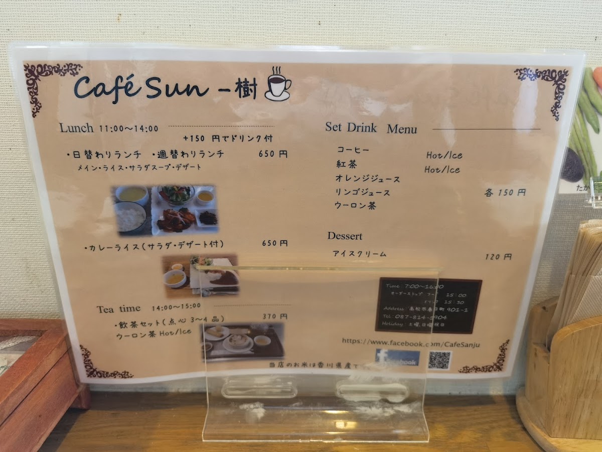 Welcome to Cafe SUN 樹, a charming coffee haven nestled in Takamatsu, Kagawa. Known for its delightful and affordable menu, this cafe is a must-visit for both locals and travelers. The daily lunch special, which features dishes like 酢豚 (sweet and sour pork) and クリームコロッケ (cream croquettes), is perfect for a satisfying meal at just 650 yen, with a refreshing drink available for an additional 150 yen.